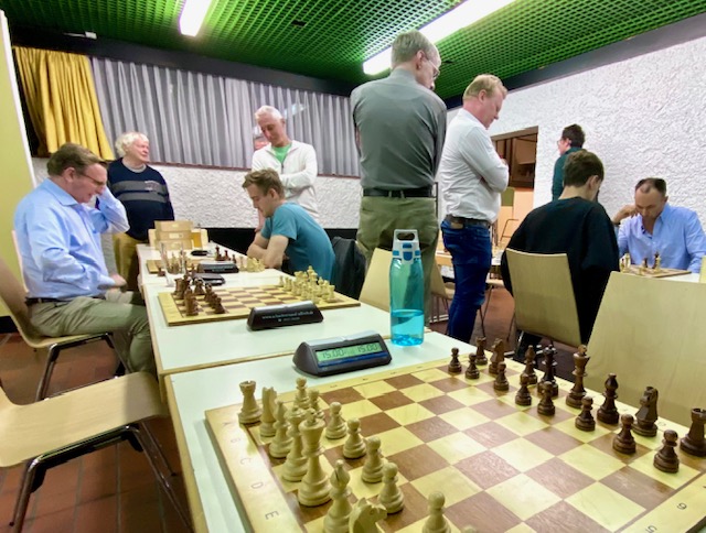 Es war ein anstrenger Kampf. Alle gaben ihr Bestes. Am Ende konnte leider nur Niklas dank einer schönen Springergabel-Kombination seinen Gegner bezwingen und den vollen Punkt einfahren. Frank, Christiane und Gerald hielten ihre Partien bis zum Ende in Remisbreite, was auch das jeweilige Ergebnis war. Dagegen mussten sich Markus, Peter S., Michael und Peter K. ihren Gegnern geschlagen geben, so dass die Mannschaft insgesamt mit 2,5:5,5 Punkten verloren hat.